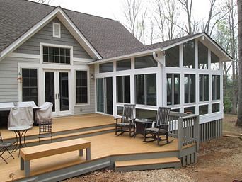 Many homeowners pair decks with enclosed areas for comfort. Sunroom additions connected to decks offer protection from heat and moisture. These spaces reduce wear on deck surfaces while expanding living space during hot, humid months.